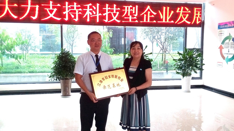 隨后,韓主席代表婦聯(lián)授予江油市科技孵化園“江油市婦女創(chuàng)新創(chuàng)業(yè)示范基地”, 園區(qū)負(fù)責(zé)人代表孵化園接受韓主席授牌,韓主席對(duì)孵化園為女性創(chuàng)業(yè)者提供各項(xiàng)優(yōu)惠政策和良好的辦公場(chǎng)所給予充分肯定,在以后的工作中,婦聯(lián)將加大力度宣傳和鼓勵(lì)女性創(chuàng)業(yè)者自主創(chuàng)業(yè)。